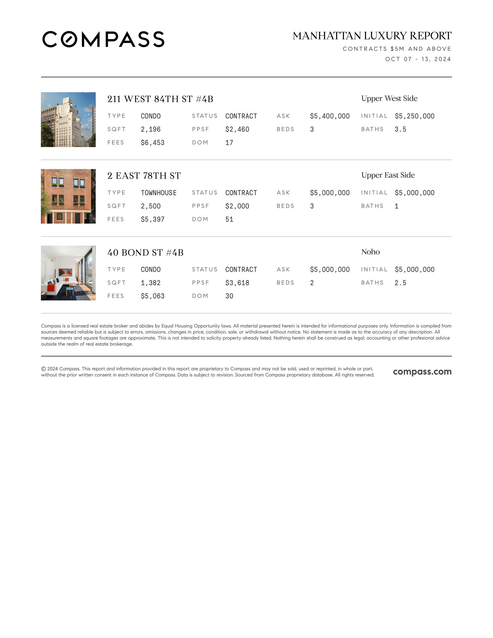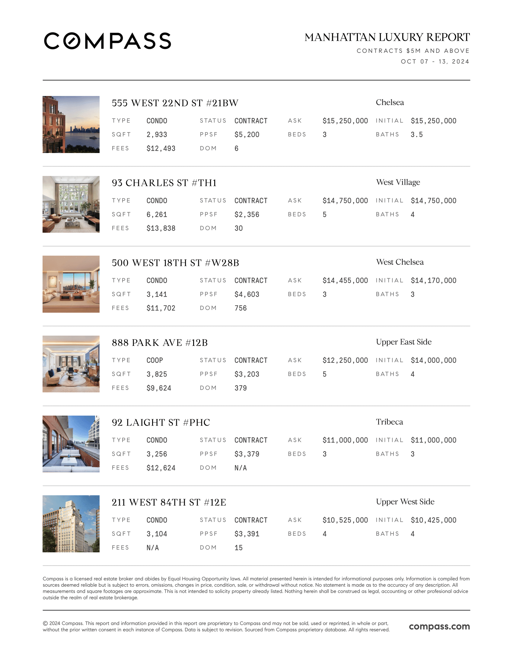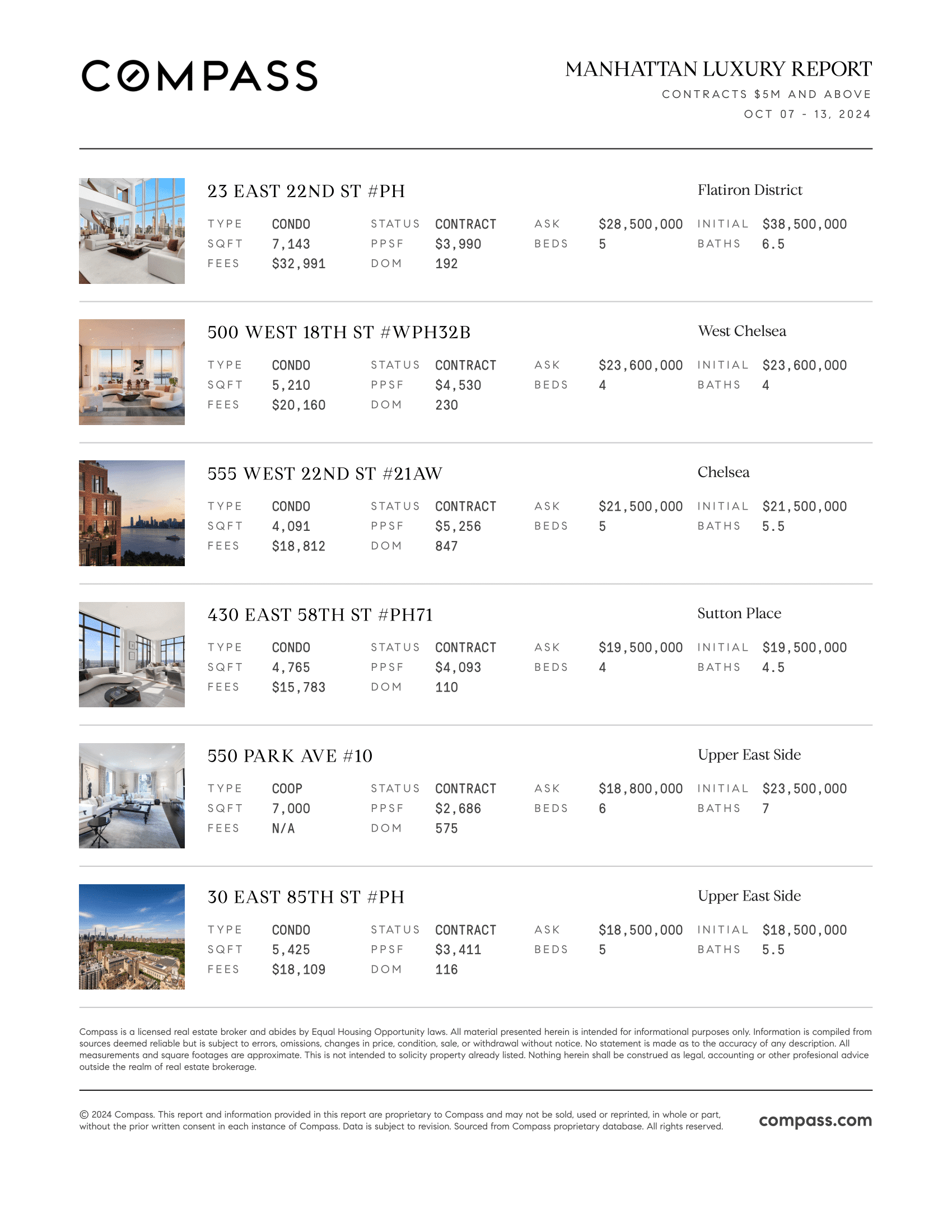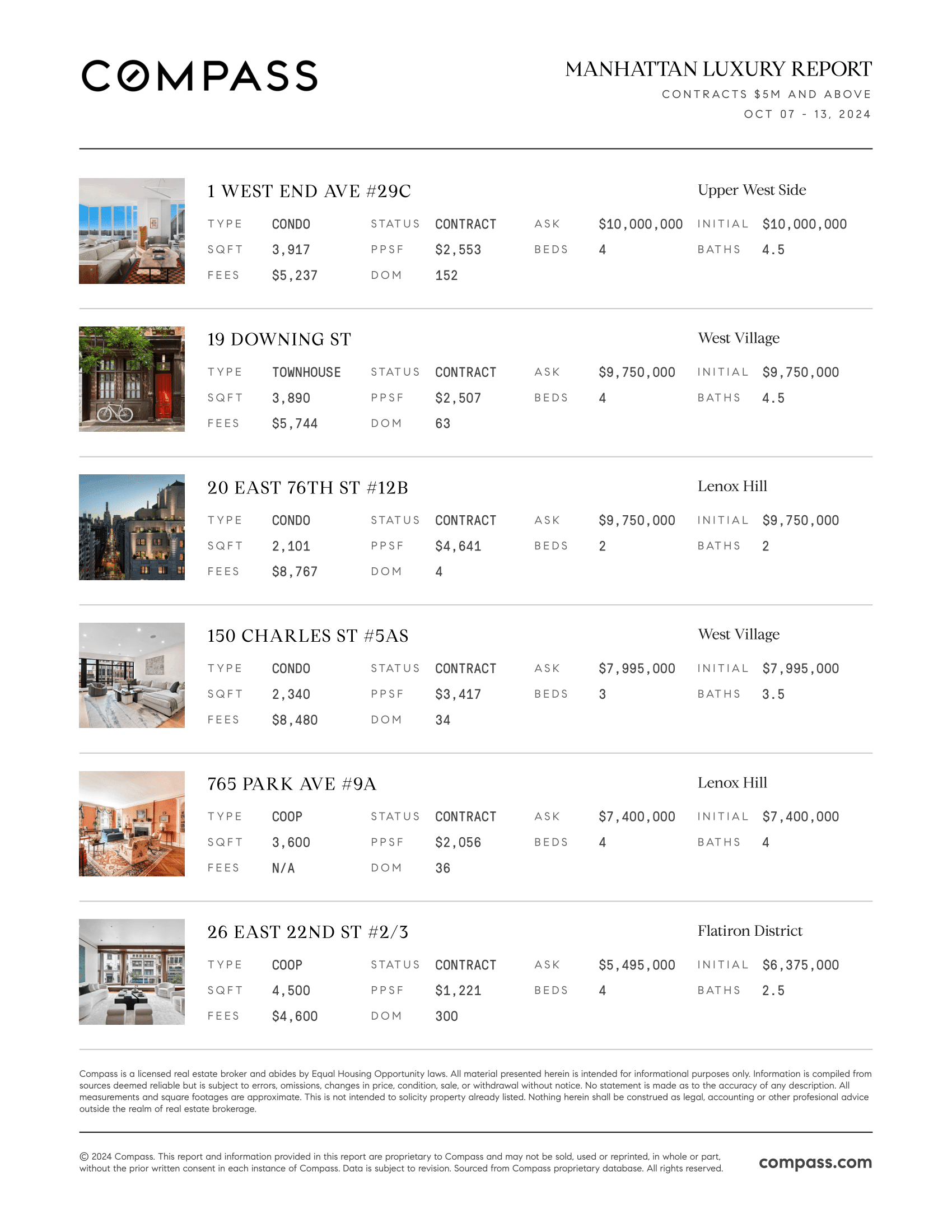 Manhattan Luxury Report: October 7, 2024 - October 13, 2024