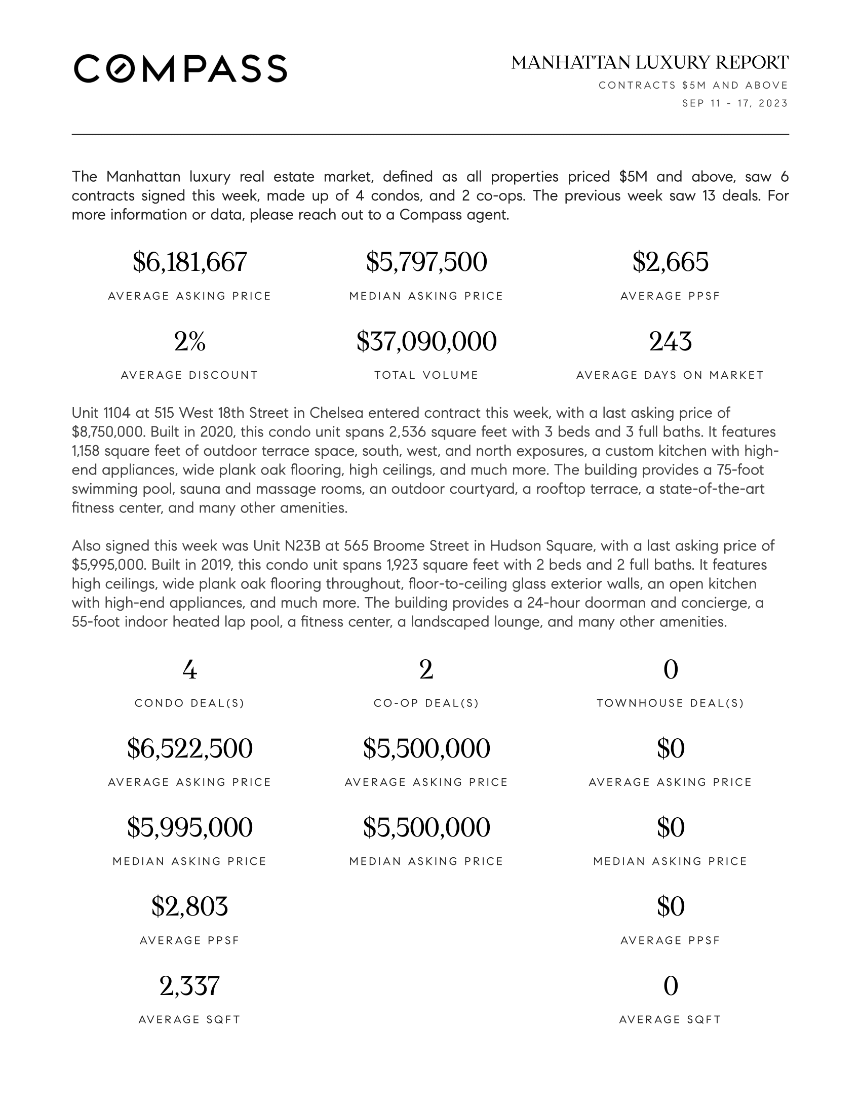 Manhattan Luxury Report: September 11, 2023 - September 17, 2023