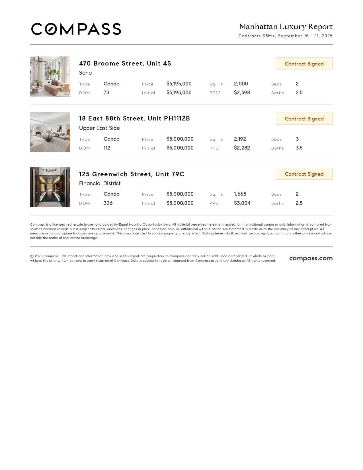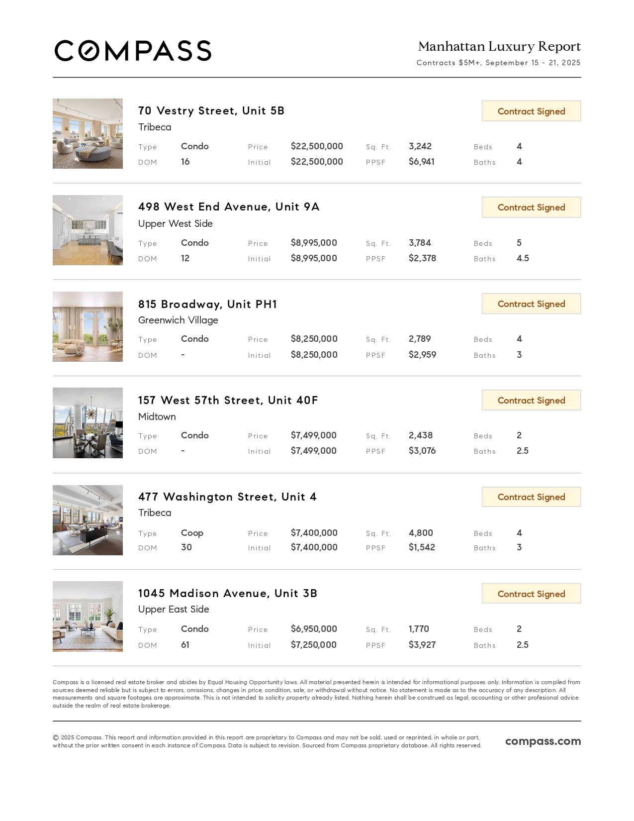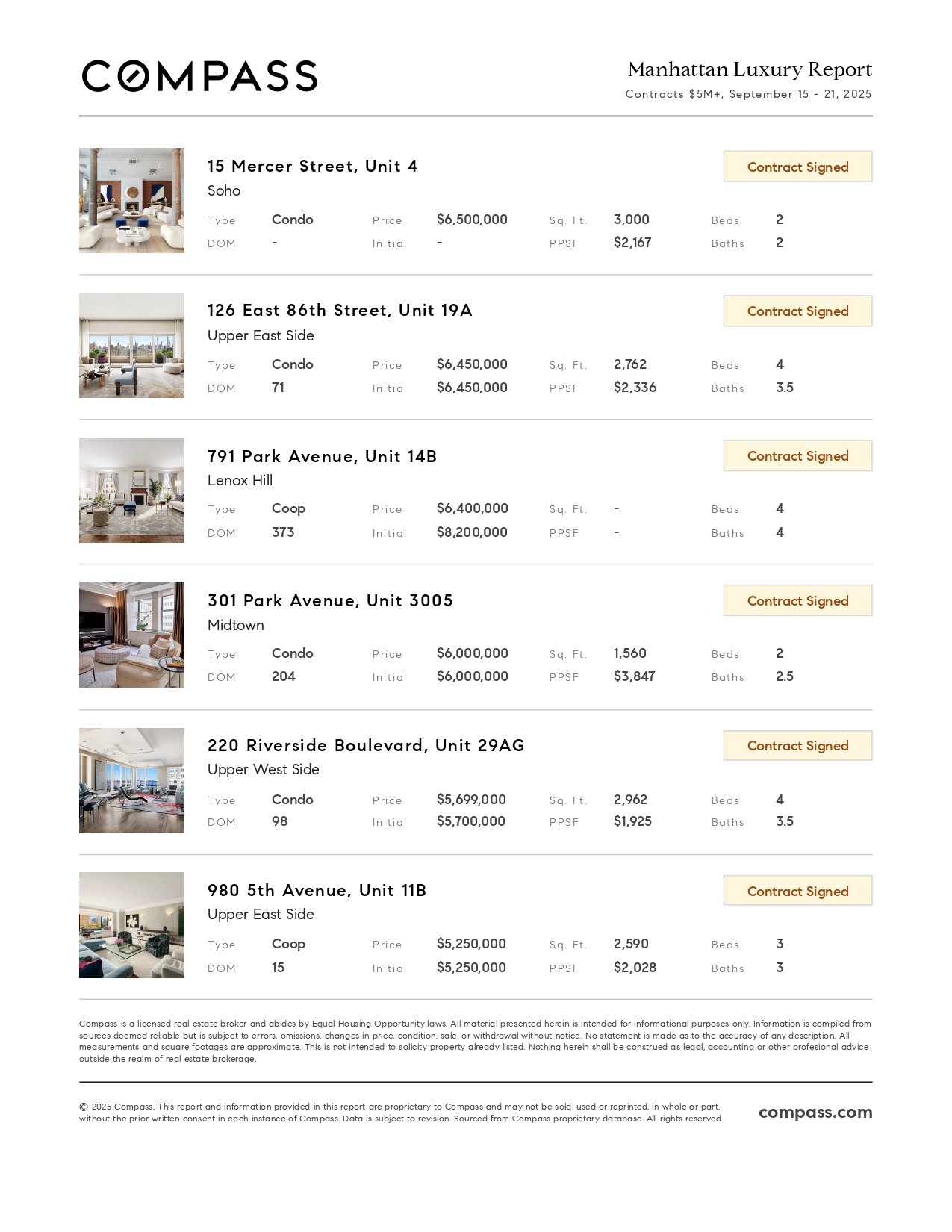 Manhattan Luxury Report: September 15, 2025 - September 21, 2025
