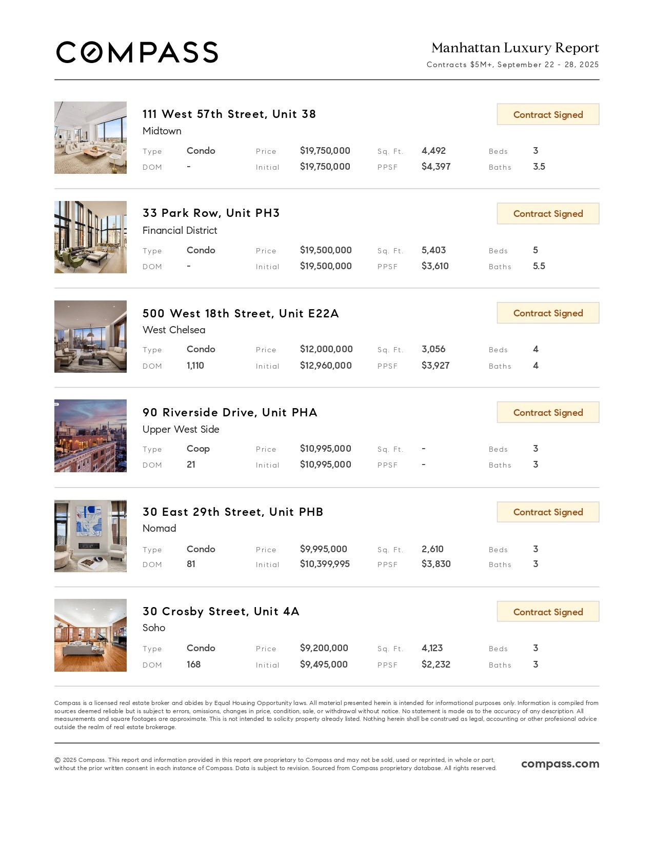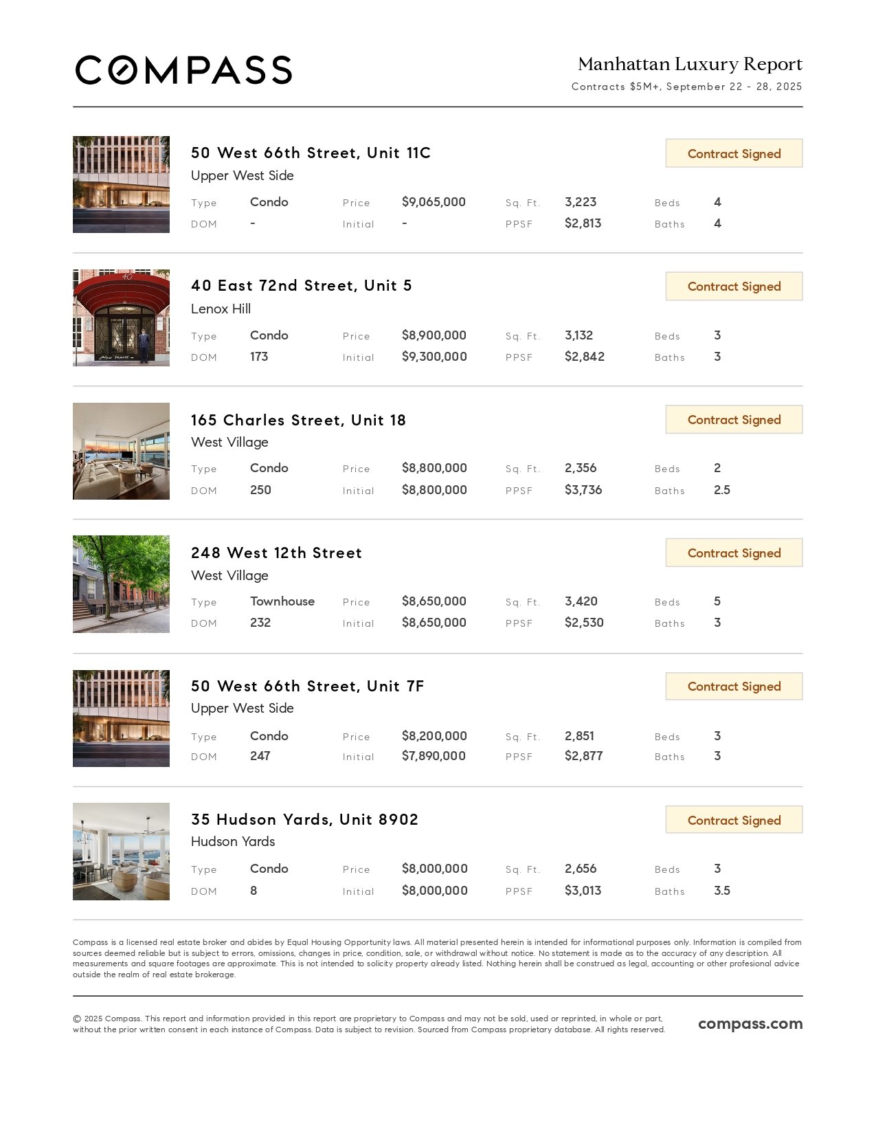 Manhattan Luxury Report: September 22, 2025 - September 28, 2025