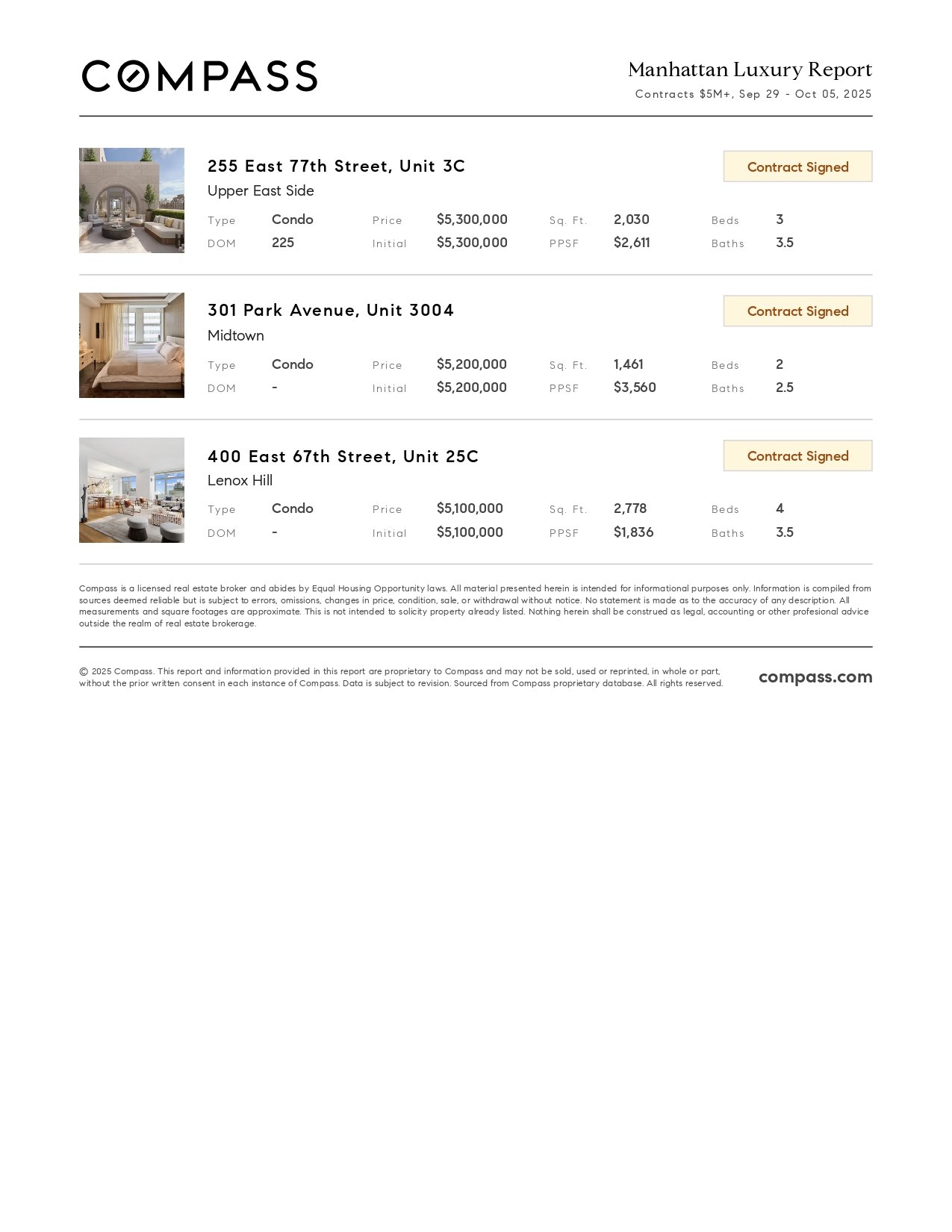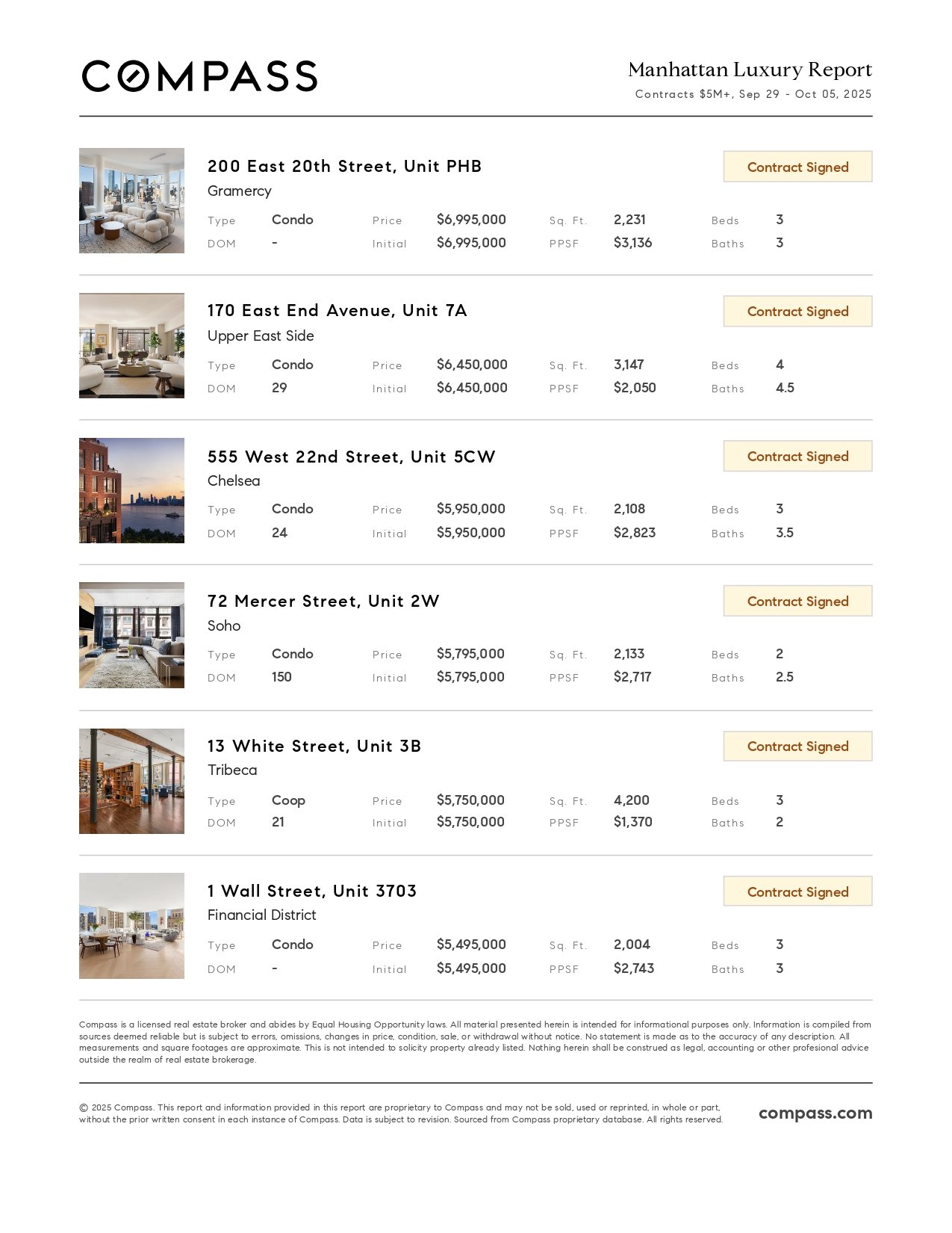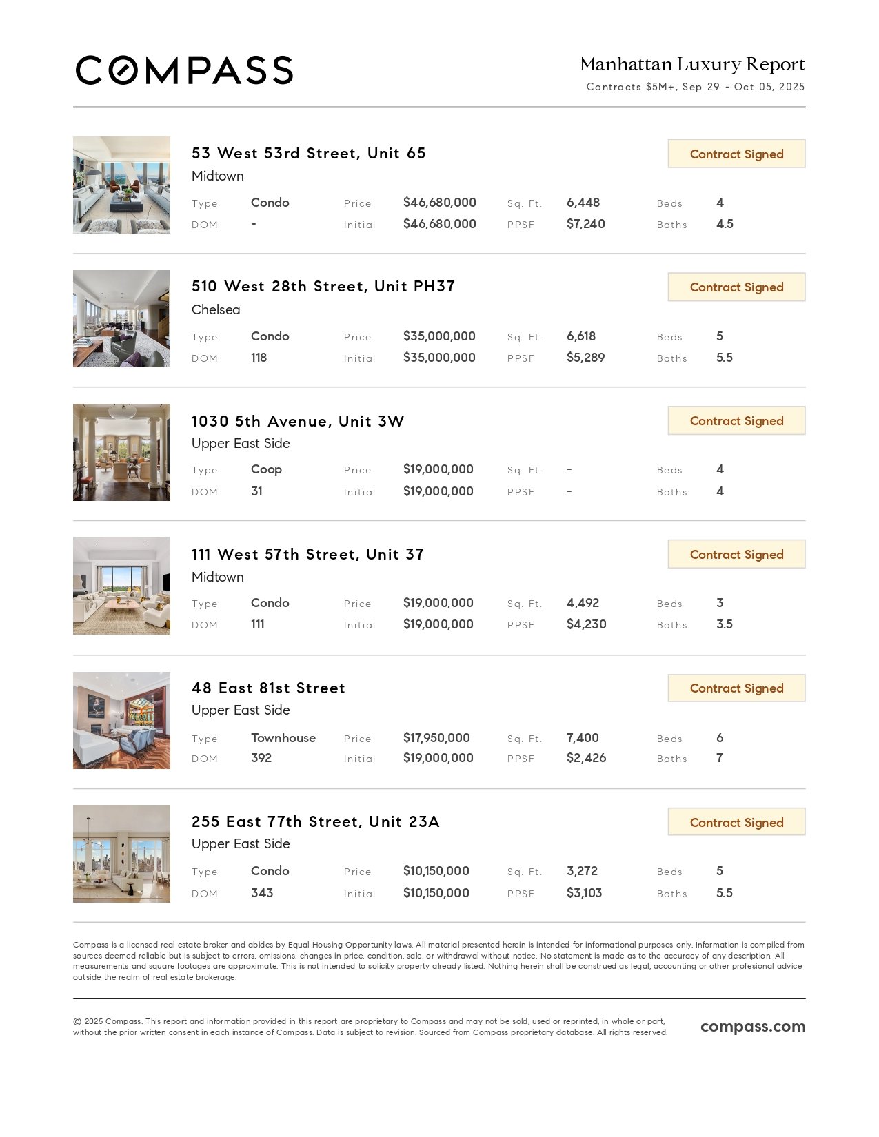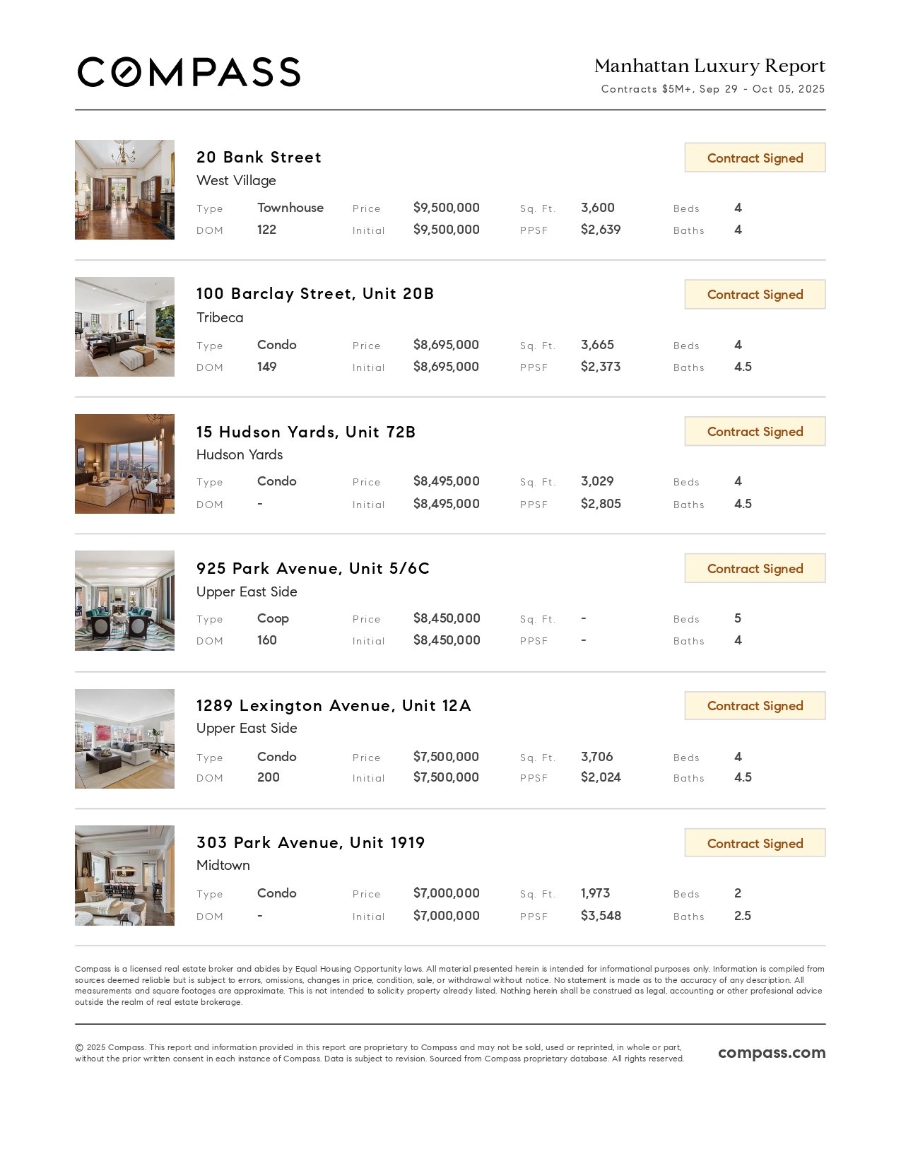 Manhattan Luxury Report: September 29, 2025 - October 5, 2025