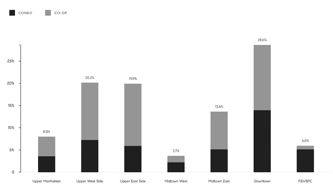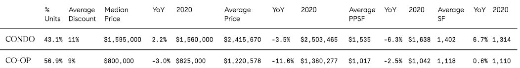 - The average price per square foot of co-ops fell 2.5% year-over-
